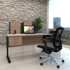 MESA RETA COM PÉ DE AÇO E GAVETEIRO FIXO