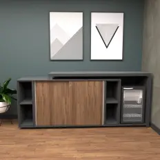 ARMÁRIO BAIXO DIRETOR COM PORTAS DE CORRER E NIHCO PARA FRIGOBAR
