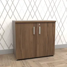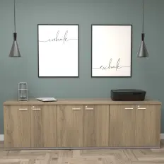 Armário misto alto com duas portas de abrir e nicho superior, tampo encabeçado confeccionado em MDP de 40 mm, corpo confeccionado em MDP de 15 mm, fundo em duraplac de 3 mm, rodapé em estrutura tubular metálica com nivelador de altura e prateleiras internas reguláveis.