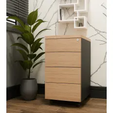 Armário alto com tampo encabeçado de 40 mm e corpo em MDP de 15 mm, duas portas de abrir, interior com 2 prateleiras móveis, 1 fixa e capacidade 15 quilos por prateleira.