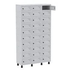 Armário baixo aberto com tampo confeccionado em BP de 25 mm, corpo confeccionado em BP de 15 mm e rodapé em estrutura tubular metálica com nivelador de altura.