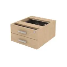 Armário médio fechado de madeira com 2 portas e 1 nicho superior, tampo confeccionado em MDP de 25 mm, corpo confeccionado em MDP de 18 mm e rodapé metálico tubular.