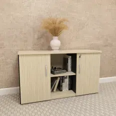 Arquivo de madeira com 4 gavetas para pasta suspensa e 1 nicho superior com travamento apenas na primeira gavetas. Tampo encabeçado confeccionado em MDP de 40 mm, laterais, base, fundo e tampas confeccionados em MDP de 15 mm.
