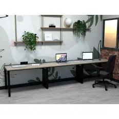 Estação de telemarketing dupla de 8 lugares com tampos, laterais e fundos confeccionados em MDP de 15mm e acabamento em perfil 180 graus nas bordas.