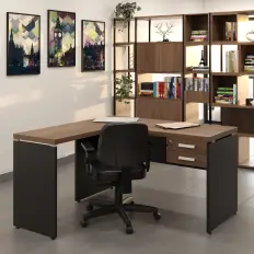 Mesa de reunião retangular com pé quadro tubular de 50 x 50 mm, tampo confeccionado em MDP de 25 mm com duas caixas de tomadas e pé central em aço com calha para subida de fiação.