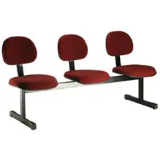 Sofá de 2 lugares estofado com almofadas fixas e estrutura suspensa cromada.